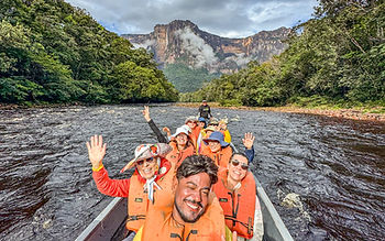 A expedição começa a bordo das tradicionais curiaras, barcos indígenas que deslizam pelos rios Carrao e Churún. Durante o percurso, o viajante sente a imensidão da selva, o som dos pássaros tropicais e a força da natureza em cada curva do rio. É uma verdadeira imersão no coração do Parque Nacional Canaima.