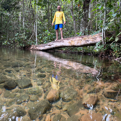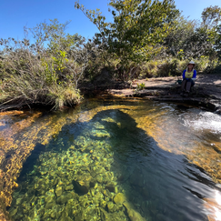 Depois seguimos até uma nova trilha para a prática de flutuação. A partir de então vamos pelo rio, passamos pelo Poço Encantado e seguimos flutuando até o Poço Verde, nadando junto à Lambaris, piaus, cascudos e outras espécies de pequenos peixes, na mais pura água doce do coração da América do Sul.