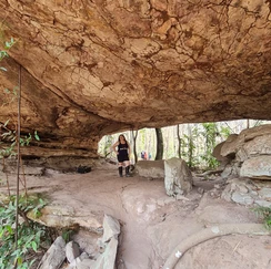 Durante a trilha atravessamos a Ponte de Pedra um lindo mirante natural, que o vento e as chuvas moldaram em centenas de anos e visitamos também outras 3 cavernas sendo elas: Caverna Aroe Jari; a maior caverna de arenito do Brasil, já citada anteriormente, a caverna Kyogo Brado; tendo um pouco mais de 20 metros de altura e 500 metros de comprimento, a única que conseguimos atravessar por completo e observar nas rochas as diferentes “eras” que passaram na região (deserto, mar e geleira) e temos também a caverna Pobe Jari que significa “cavernas das duas bocas”, que também possui cerca de 500 metros de extensão e 3 metros de altura.