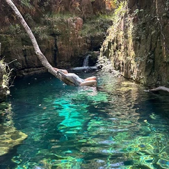 Uma das trilhas mais novas que temos na região da Serra do Roncador, o seu acesso também é realizado pela Estancia Favo de Mel, uma trilha de quase 10km com vários trechos de subidas e descidas, fazendo com que a trilha seja uma das mais “pesadas” da região. Mas, acredite que vale muito mesmo ir neste paraíso, um lugar quase totalmente intocado pelas mãos dos homens, encontramos poucos rastro da nossa passada por lá, na verdade único rastro que encontramos é uma leve marcação na vegetação, que é por onde a gente se orienta para chegar no destino final, que são várias piscinas azuis de tirar fôlego. Ainda os atrativos não possuem nome especifico.