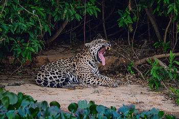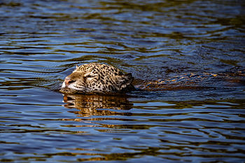 Ao contrário de muitos felinos, a onça-pintada adora água e é uma excelente nadadora. Ela costuma caçar presas aquáticas, como jacarés e peixes, e atravessar rios com facilidade. No Pantanal, é comum avistá-las descansando ou caçando nas margens dos rios.