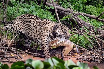 A onça-pintada é a estrela do Pantanal e o maior felino das Américas. Com seu olhar imponente e agilidade impressionante, ela simboliza a força e a biodiversidade da região. No Pantanal, é relativamente fácil avistá-la, especialmente em passeios de barco pelos rios. A onça é uma predadora de topo, essencial para o equilíbrio ecológico.