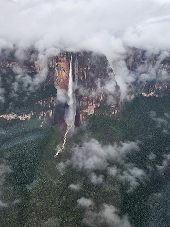 O Salto Ángel despenca do Auyantepui, um dos gigantescos tepuis da região. Para os pemóns, essas formações são consideradas “casas dos deuses”. Eles acreditam que os tepuis são locais sagrados, protegidos por espíritos ancestrais. Subir um tepui é visto como um ato ousado, que deve ser feito com respeito, pois acredita-se que perturbar o equilíbrio dessas montanhas pode trazer desastres.